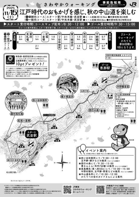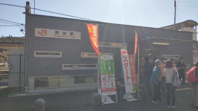 JR中央線武並駅、10時20分着です。このところ熊の出没で大変なことになっていますので、もしやと思い、朝、Xでウォーキングが開催されているかどうかを見てみましたら、まだ8時だというのに歩いている人の投稿がありました。