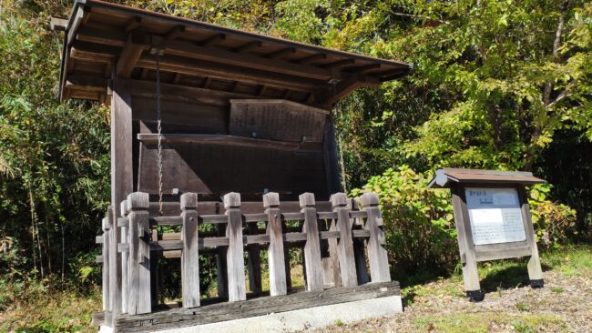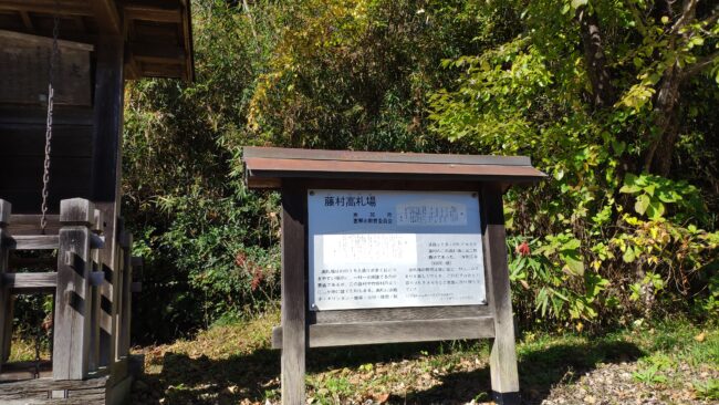 東屋風の休憩所でトイレを借り、道路沿いに100mくらいで「藤村高札場」です。