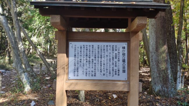 江戸時代の末頃ここには槙本屋・水戸屋・東国屋・松本屋・中野屋・伊勢屋などの屋号を持つ茶屋が九戸あった。そして店先にわらじを掛け餅を並べ、多くの人がひと休みしてまた旅立って行ったと思われる(旅人の宿泊は宿場の旅籠屋を利用し、茶屋の宿泊は禁止されていた)。