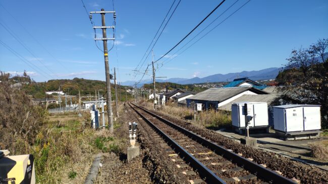 JR中央線を渡ります。単線ということではなく、武並恵那間は上下線が分かれています。中津川方面を見ています。