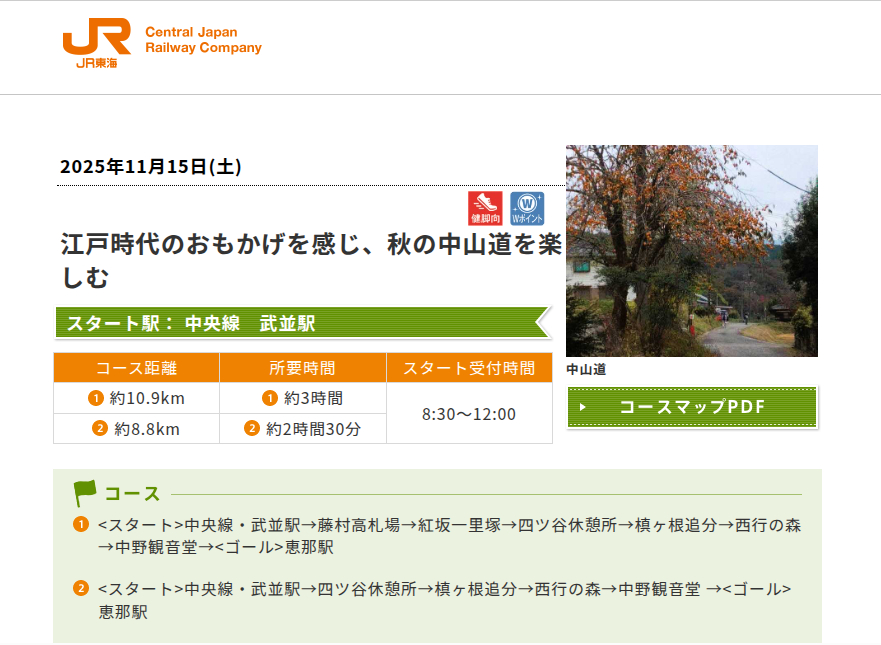JR中央線武並駅、10時20分着です。このところ熊の出没で大変なことになっていますので、もしやと思い、朝、Xでウォーキングが開催されているかどうかを見てみましたら、まだ8時だというのに歩いている人の投稿がありました。