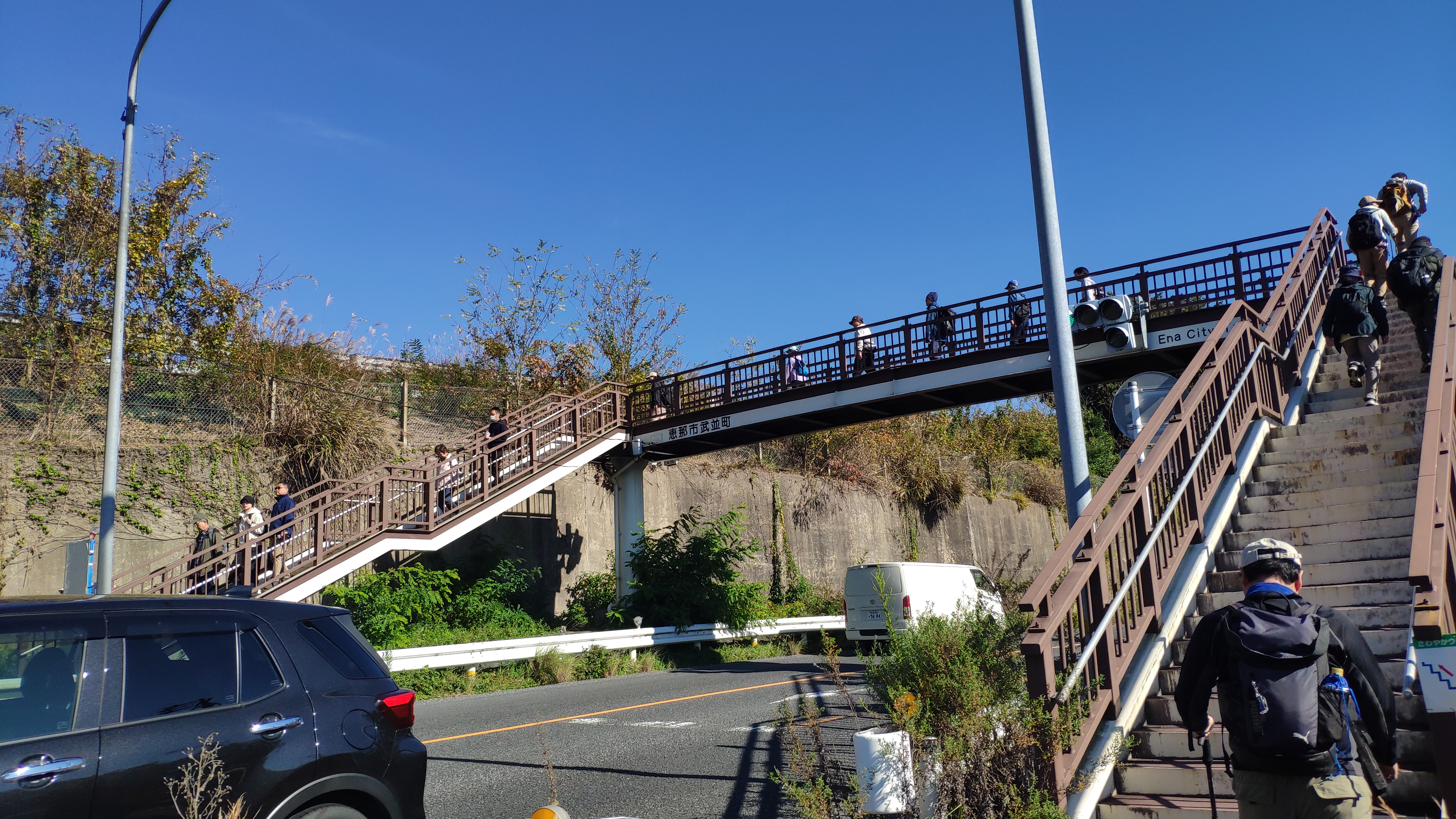 スタートして10分くらい、国道19号線を歩道橋で渡ります。