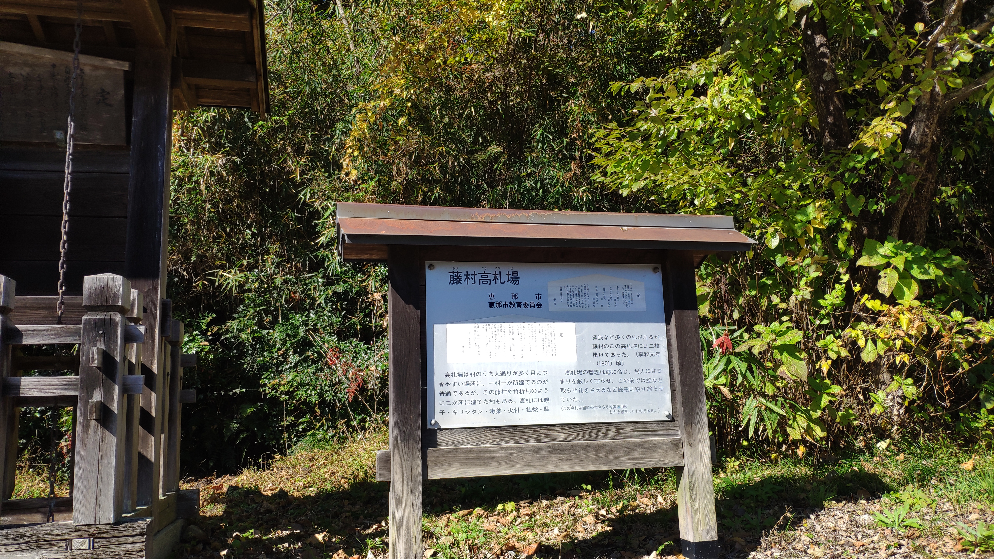 高札場は村のうち人通りが多く目につきやすい場所に、一村一か所建てるのが普通であるが、この藤村や竹折村のように二か所に建てた村もある。高札には親子・キリシタン・毒薬・火付・徒党・駄賃銭など多くの札があるが、藤村のこの高札場には二枚掛けてあった。〔享和元年(1801)頃〕