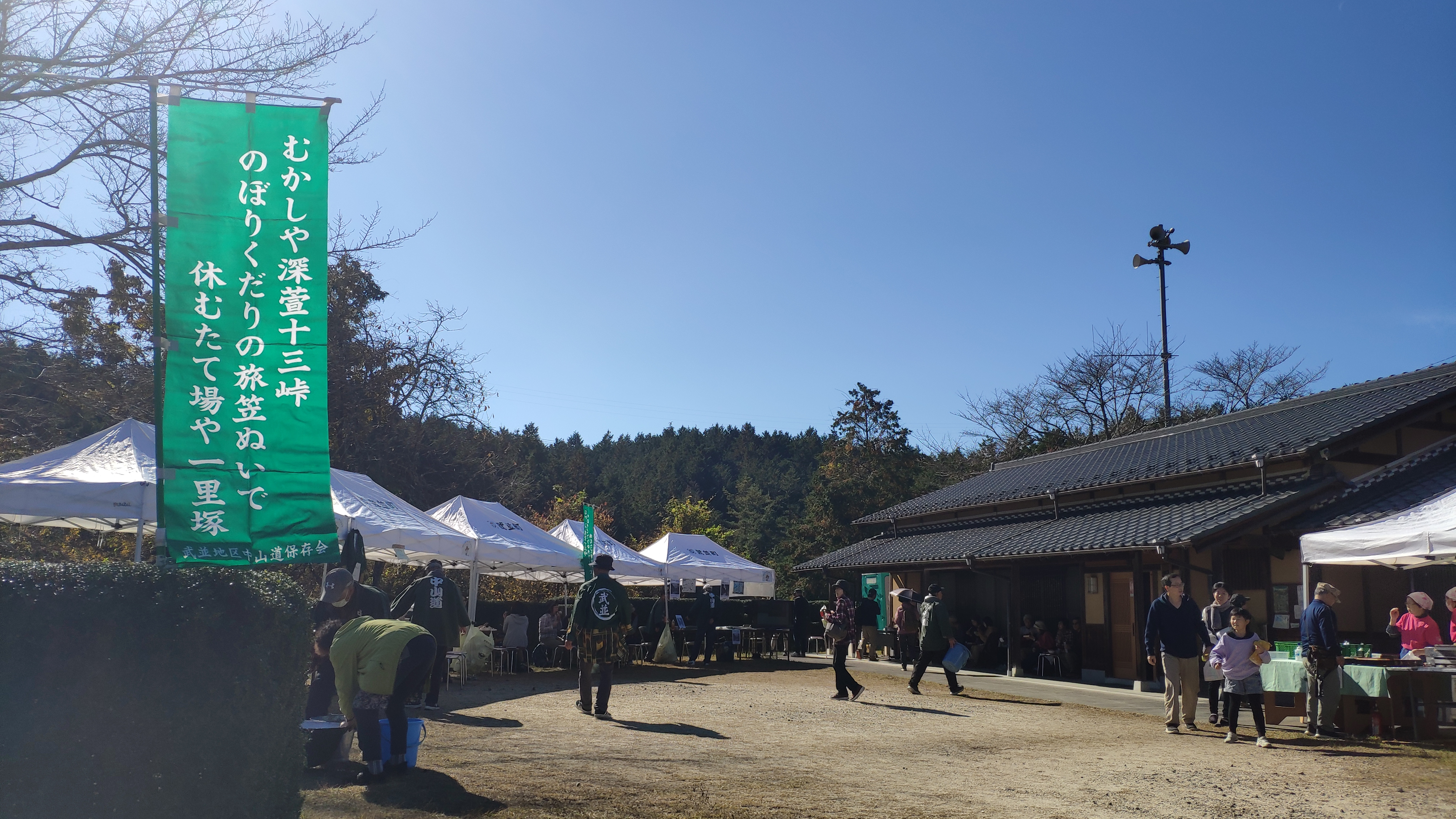 中野村庄屋の家にも暖簾がかかっていますが、旧中山道の商店街では「第16回中山道のれんコンテスト」が行われていました。