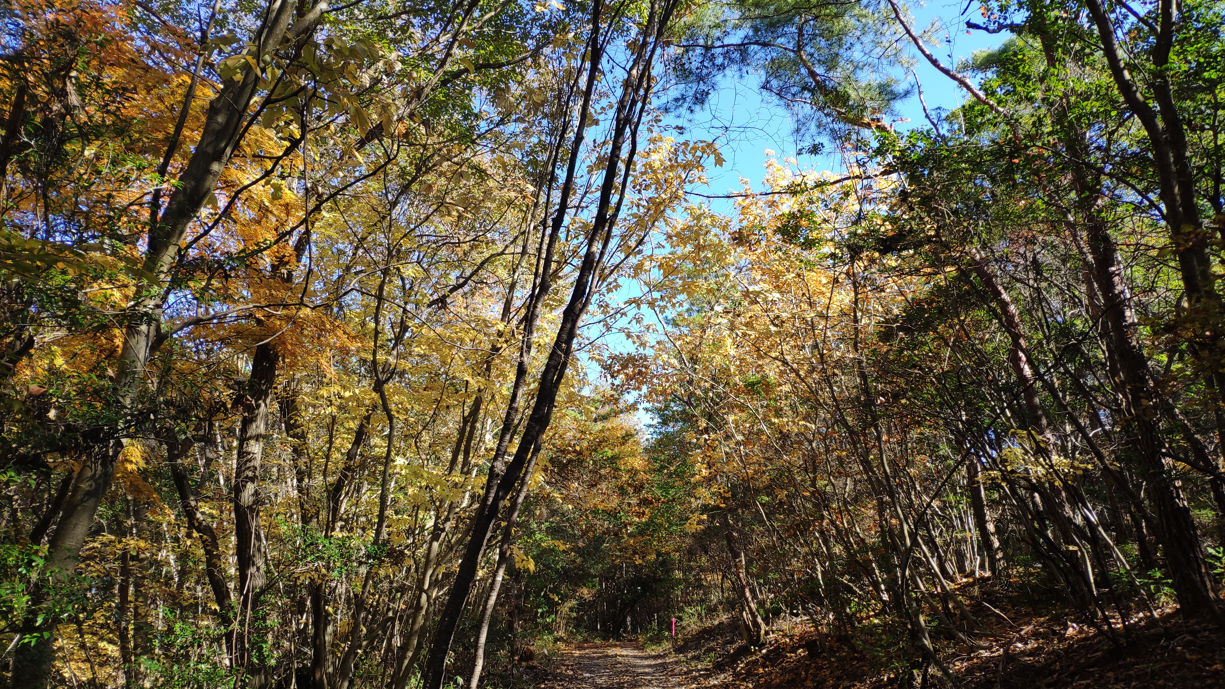 天気もいいですし、紅葉も少しずつ進んでいます。歩きながら適当に撮っている写真ですが、多少は快適さが伝わると思います。