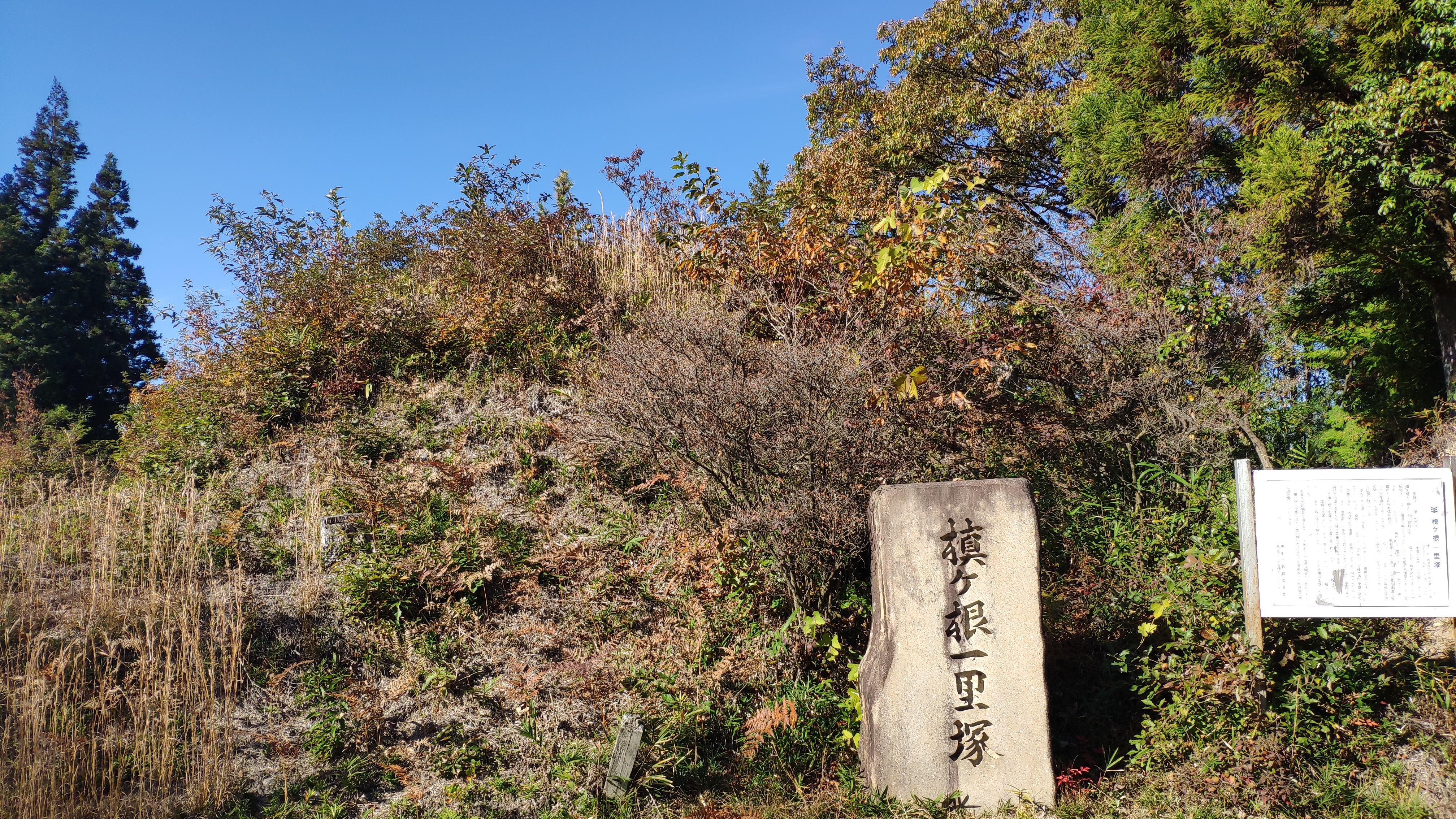 「桜百選の園」と同じところに「槙ヶ根一里塚」があります。ここも両側に残っています。