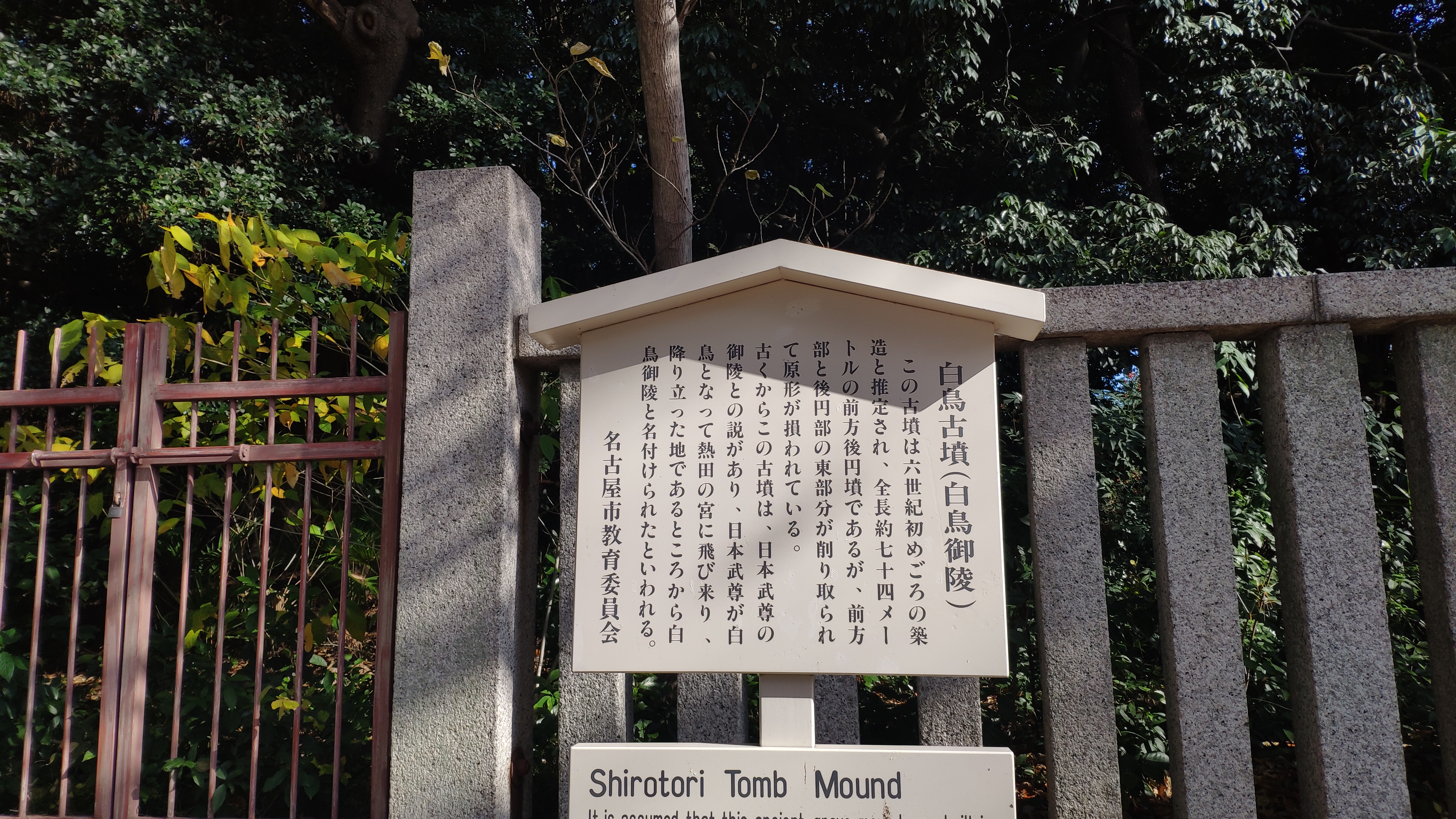 6世紀初頭に築造されたと考えられている前方後円墳で、法持寺のすぐ隣に位置、白鳥公園に隣接する。かつては法持寺が管理していたが、1876年(明治9年)からは熱田神宮に、戦後は名古屋市に管理が移された。
