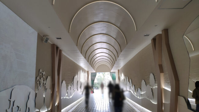 トンネルを通ります。季節なのか、年ごとなのかわかりませんが装飾が変わります。下は2022年の秋のトンネルです。