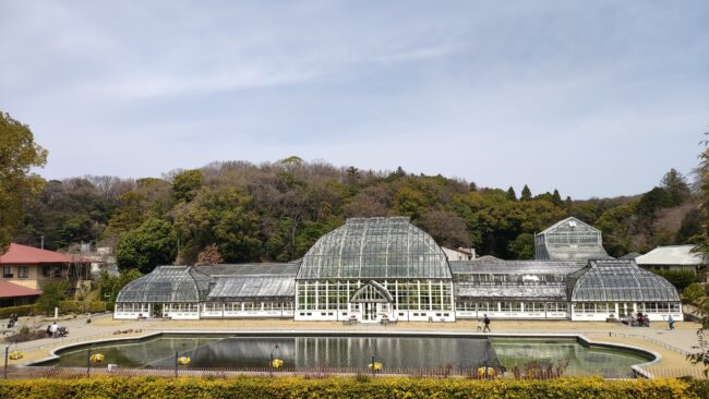 国指定重要文化財の「名古屋市東山植物園温室前館」です。