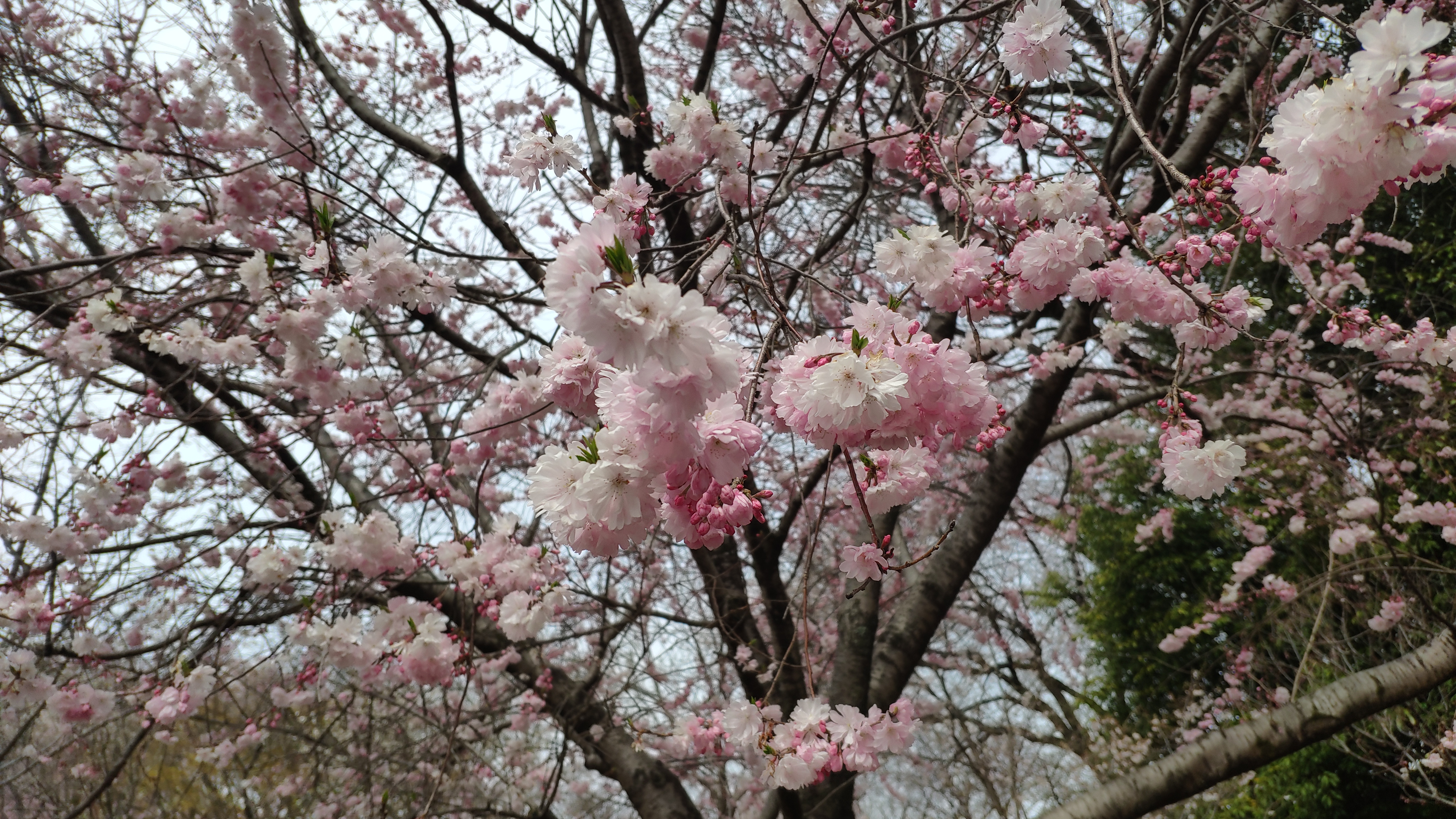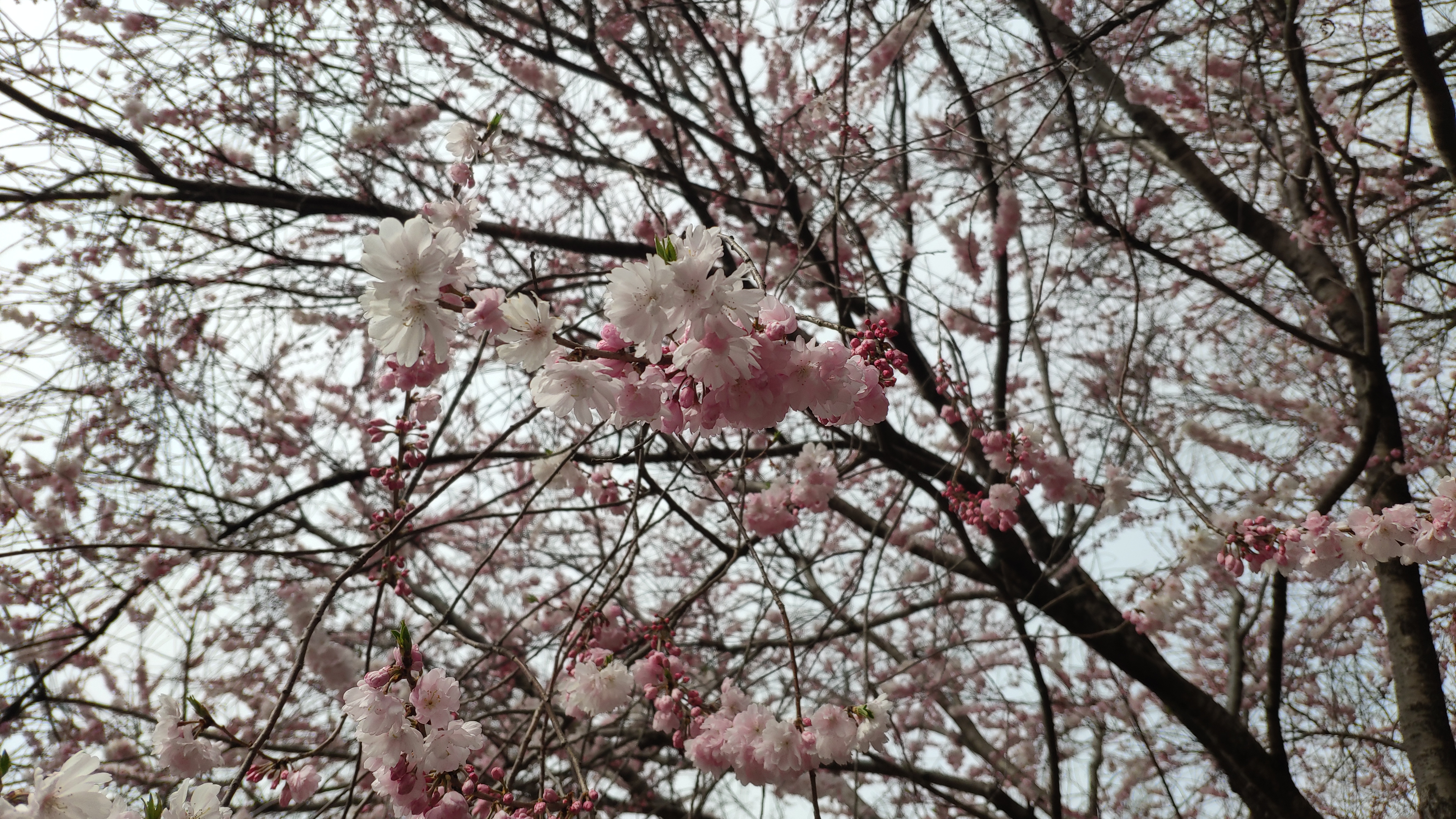 「糸桜」でしょうか。曇り空でバックが白っぽくあまり映えないですね。