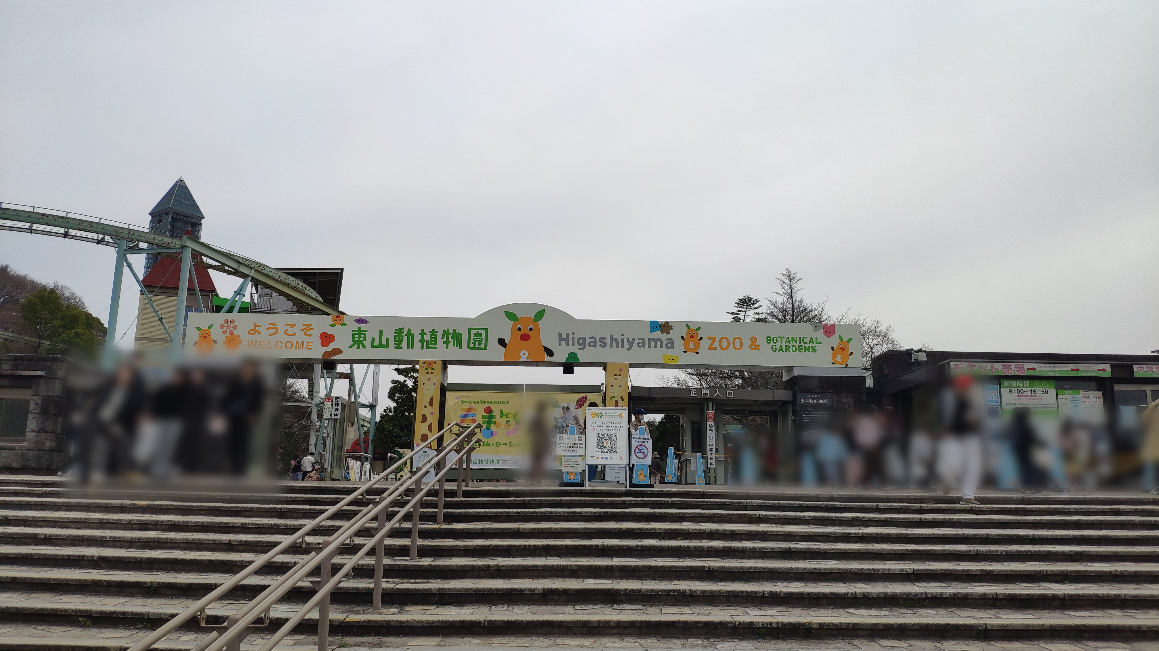 東山動植物園正門です。12時10分くらいです。約2時間の花見回廊巡り&ちょっとだけ動物園でした。