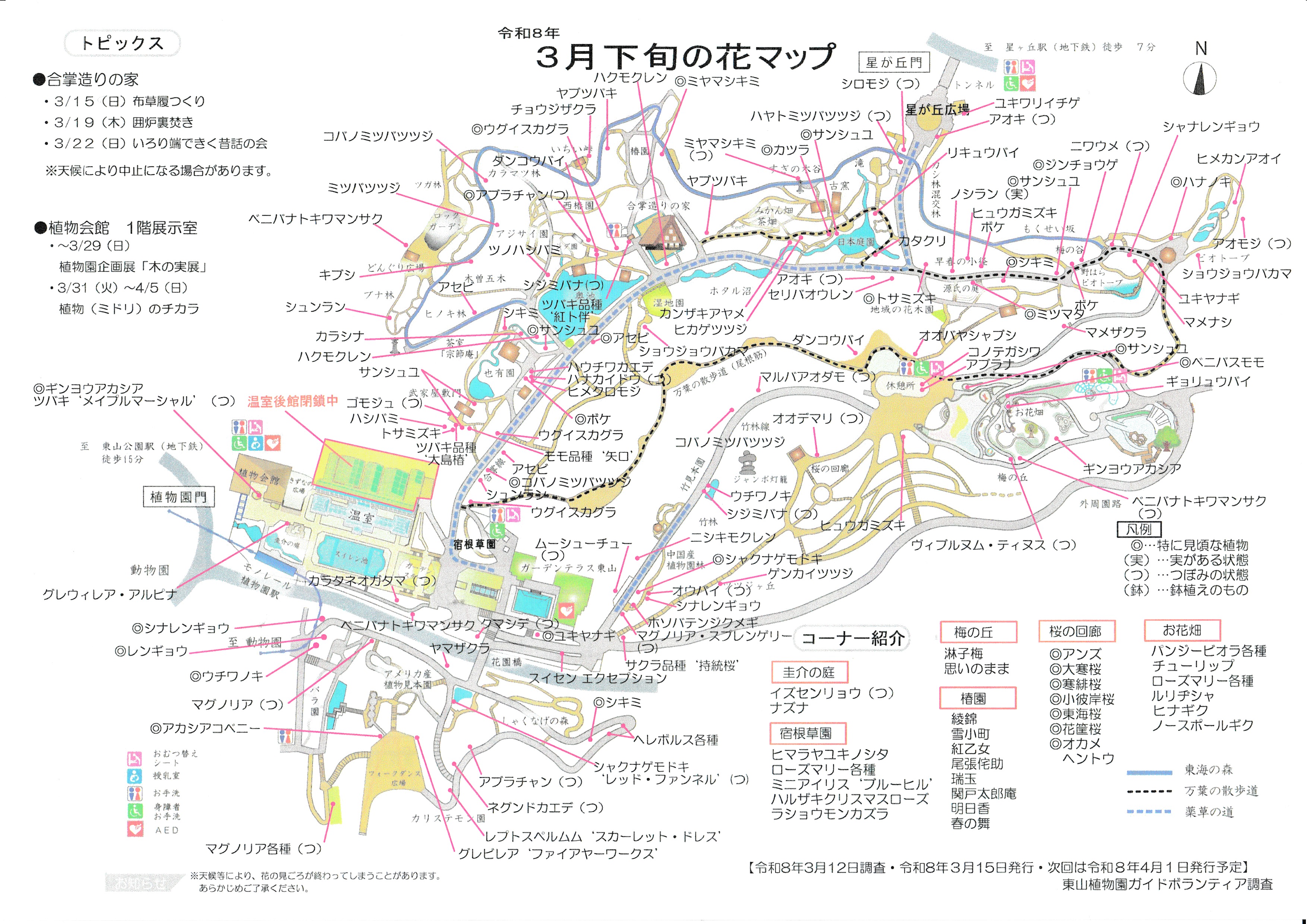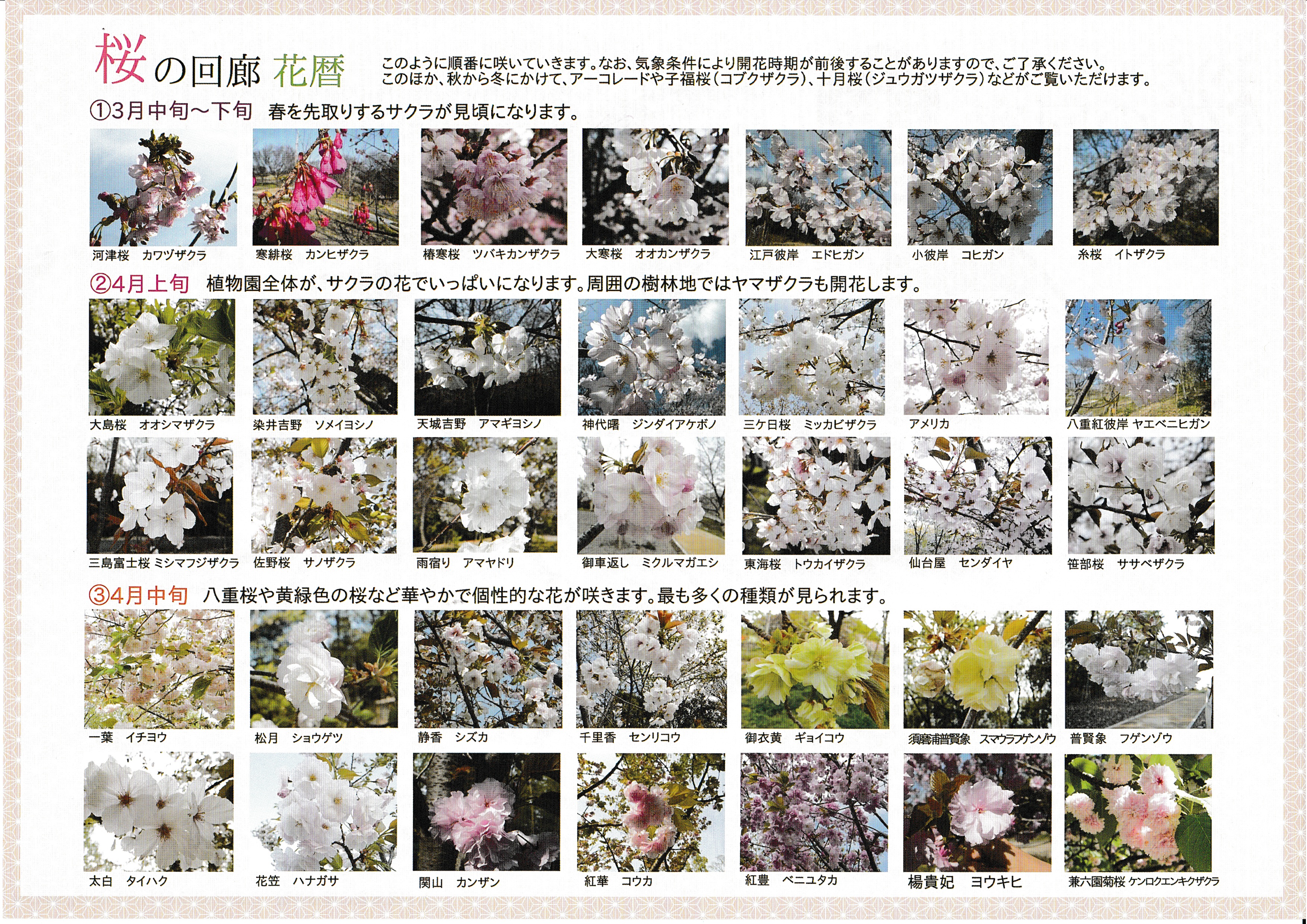 桜が咲く順番に並べられたリーフレット、今は一行目の右端くらいです。