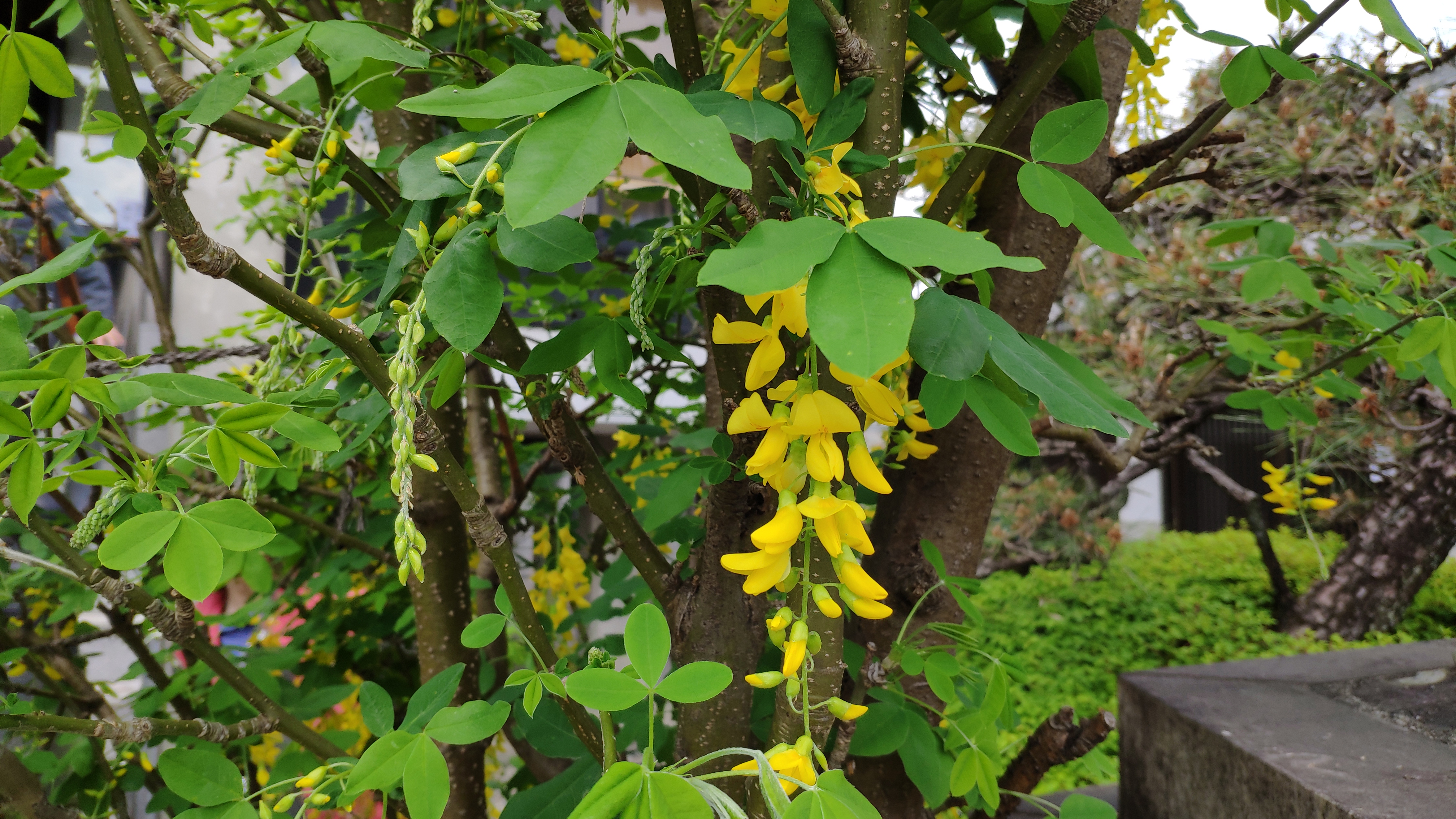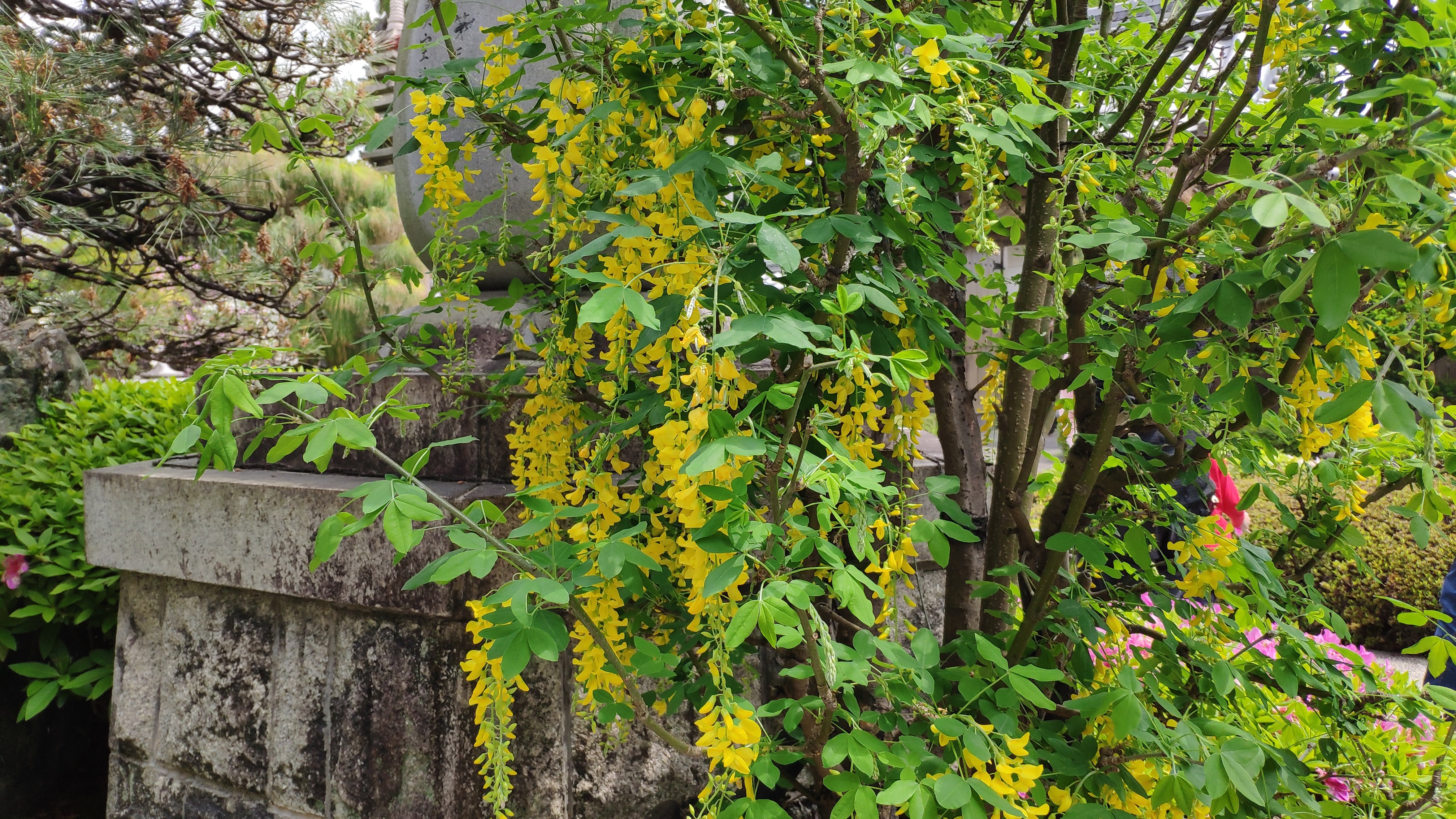 曼陀羅寺公園から北方面にある修造院に黄色い藤キングサリがあります。